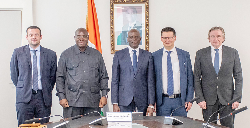 La salle de réunion du 14ème étage de la Tour B de la Cité administrative sise à Abidjan-Plateau a abrité, dans l’après-midi du mercredi 15 avril 2026, une rencontre entre le ministre de l’Enseignement supérieur et de la recherche scientifique, Prof Adama Diarra, entouré de ses collaborateurs et une délégation du Centre spatial de l’Université de Montpelier (CSUM) conduite par Prof Laurent Dusseau, directeur de CSUM et président de la Fondation VAN ALLEN. Cette rencontre marque une étape importante dans la mise en œuvre de l’Agence spatiale de Côte d’Ivoire (ASCI).
